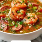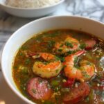 This Authentic Louisiana Gumbo recipe combines the rich flavors of Andouille sausage, fresh vegetables, and a deeply browned roux, simmered to perfection for a hearty and comforting Creole classic.