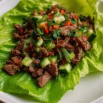 - Assemble wraps: Spoon the beef mixture into individual butter or iceberg lettuce leaves.