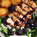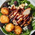 This Blackberry Balsamic Grilled Chicken Salad with Crispy Fried Goat Cheese is a delightful combination of savory and sweet flavors, featuring tender grilled chicken marinated in a blackberry balsamic dressing, paired with fresh berries, crunchy pecans, and crispy golden fried goat cheese. Perfect for a gourmet summer salad, it offers a vibrant and satisfying meal that balances juicy grilled protein with fresh greens and a tangy, fruity dressing.