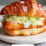 This Chicken Caesar Croissant Sandwich pairs wonderfully with crisp kettle-cooked chips, a simple mixed green salad, or even sweet potato fries. The sides should complement the sandwich without competing with its bold flavors.