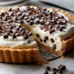 Chocolate Chip Cannoli Pie is a no-bake, creamy dessert that combines the smoothness of ricotta and mascarpone cheeses with sweet powdered sugar and mini chocolate chips, all nestled in a crunchy graham cracker crust. Perfectly chilled for a few hours, this pie offers a delightful cannoli-inspired flavor in a convenient pie form, topped optionally with chopped pistachios or extra chocolate chips for added texture and taste.