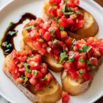 This Easy Bruschetta recipe is a simple and delicious Italian appetizer featuring fresh tomatoes, basil, garlic, and toasted baguette slices. Perfect for a quick snack or party starter, it combines refreshing garden flavors with a touch of balsamic vinegar for a tangy finish.