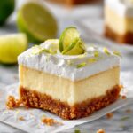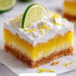8. Garnish and Serve. Sprinkle the top with lime zest, slice into bars, and serve chilled for a refreshing dessert.
