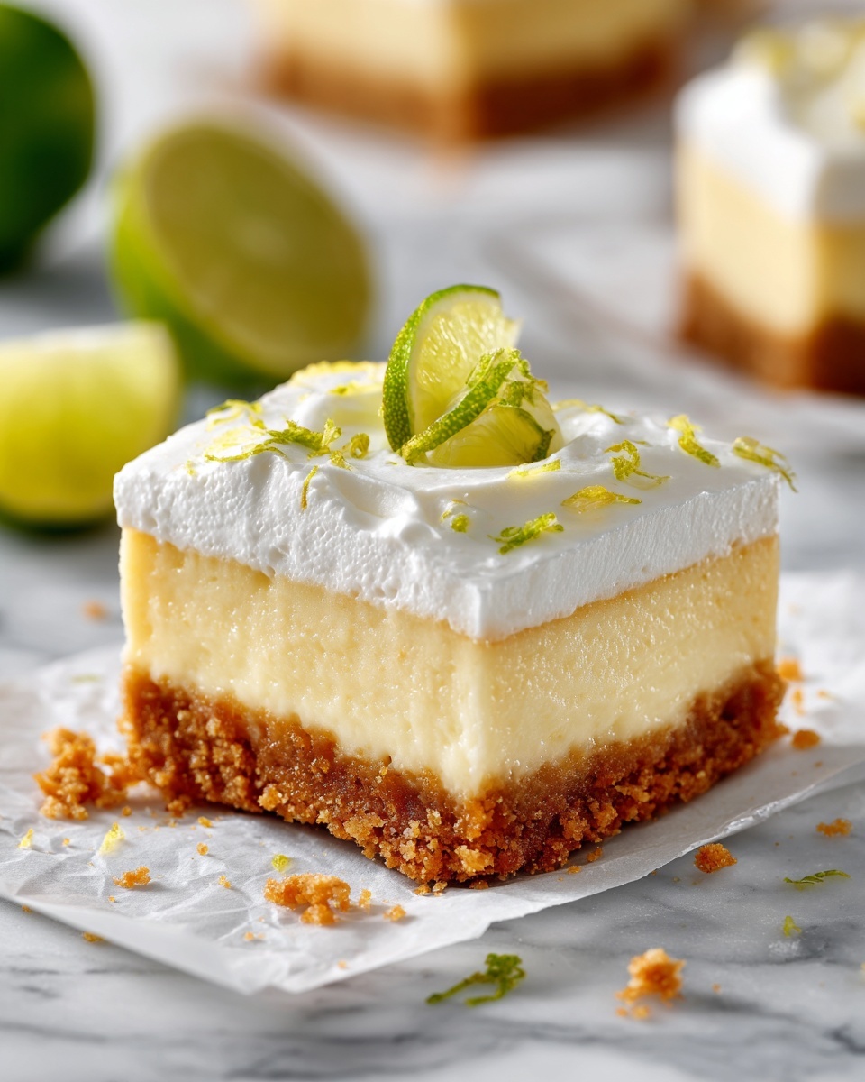 Elevate these bars by adding a few garnishes such as fresh whipped cream, extra lime zest, or even thin lime slices. These little touches not only amp up the visual appeal but also add layers of flavor and texture—a cool, creamy contrast and a zesty boost that your taste buds will thank you for.