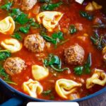 A comforting and hearty Meatball and Tortellini Soup featuring tender meatballs, cheesy tortellini, and fresh spinach simmered in a flavorful tomato and beef broth base. Perfect for a quick and satisfying meal ready in just 30 minutes.