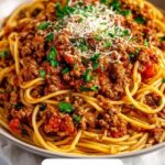 This One-Pot Taco Spaghetti combines the bold flavors of taco seasoning with tender spaghetti pasta for a quick and easy dinner. Ground beef is simmered with diced tomatoes, tomato sauce, and cheese all in one skillet, making it a convenient, family-friendly meal packed with savory and cheesy goodness.