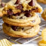 These Potato Chip Cookies combine the salty crunch of ruffled potato chips with rich chocolate chips in a buttery, soft cookie dough. The cookies offer a delightful balance of sweet and savory flavors, with a tender, chewy texture and crispy edges. Perfect as a unique treat for snack lovers looking for a fun twist on classic chocolate chip cookies.