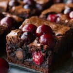 These Roasted Cherry Brownies combine rich, fudgy chocolate with the sweet tang of roasted cherries, creating a decadent and moist dessert perfect for any chocolate lover. The cherries are roasted to intensify their flavor and incorporated into a luscious brownie batter studded with melty chocolate chips, then topped with more roasted cherries for an irresistible finish.