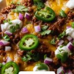 Once baked, garnish your nachos with diced tomatoes, chopped red onions, sour cream, and green onions. These fresh toppings add a delightful contrast in texture and flavor, making every bite vibrant and refreshing. Serve immediately and prepare for rave reviews!